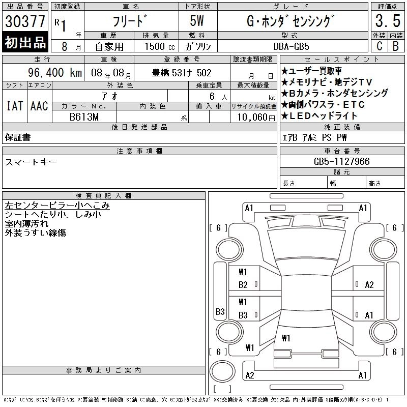 HONDA FREED 2019 г., лот № 30377
