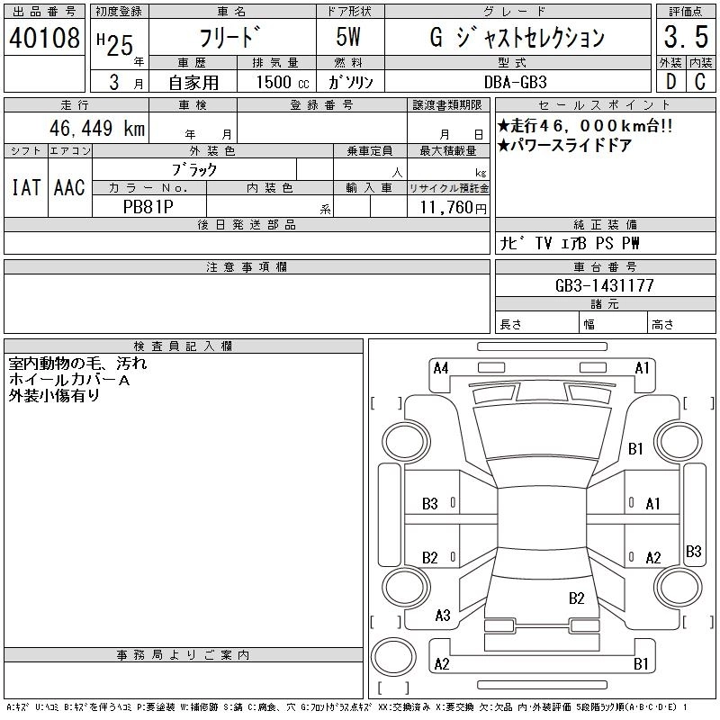 HONDA FREED 2013 г., лот № 40108