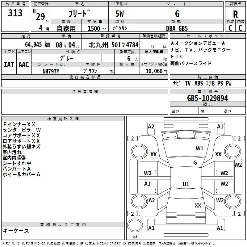 HONDA FREED 2017 г., лот № 313