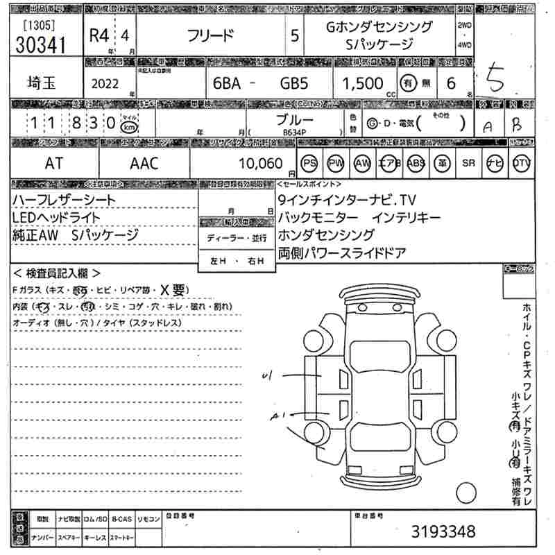 HONDA FREED 2022 г., лот № 30341