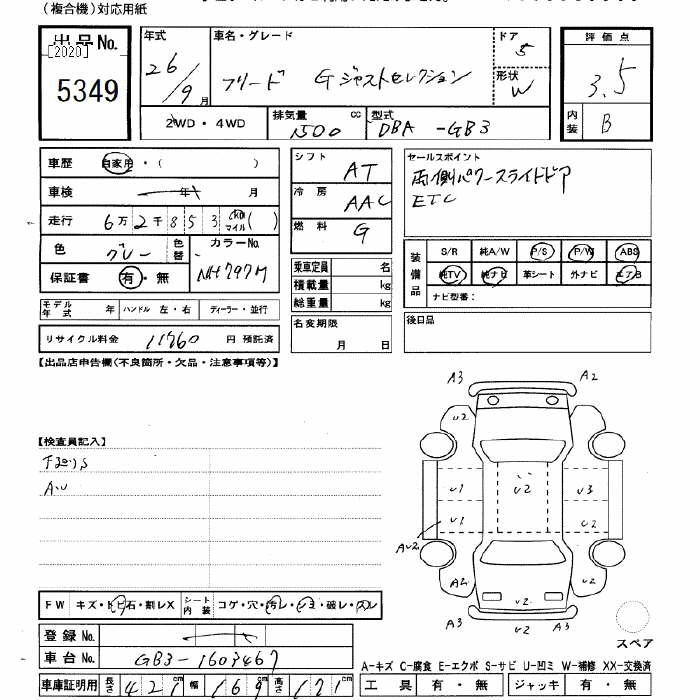 HONDA FREED 2014 г., лот № 5349