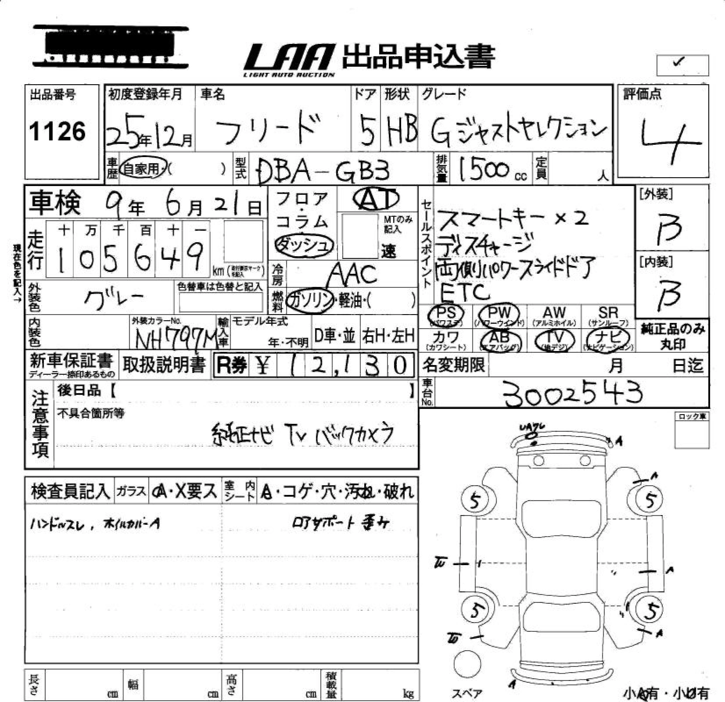 HONDA FREED 2013 г., лот № 1126