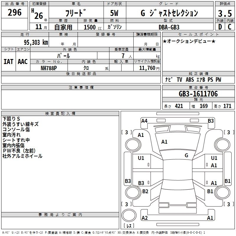 HONDA FREED 2014 г., лот № 296