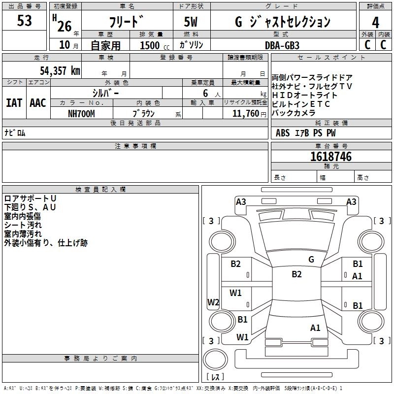 HONDA FREED 2014 г., лот № 53