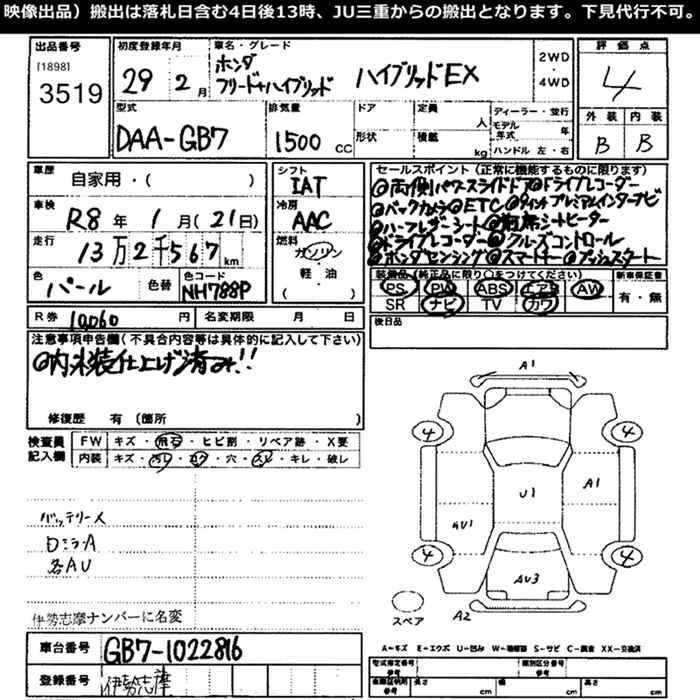 HONDA FREED+ 2017 г., лот № 3519