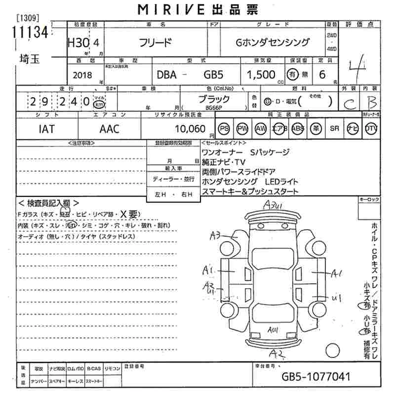 HONDA FREED 2018 г., лот № 11134