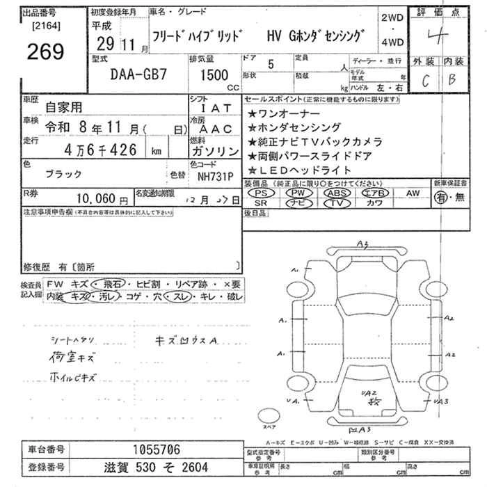 HONDA FREED 2017 г., лот № 269