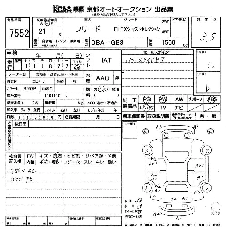 HONDA FREED 2009 г., лот № 7552