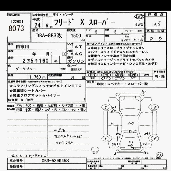 HONDA FREED 2012 г., лот № 8073