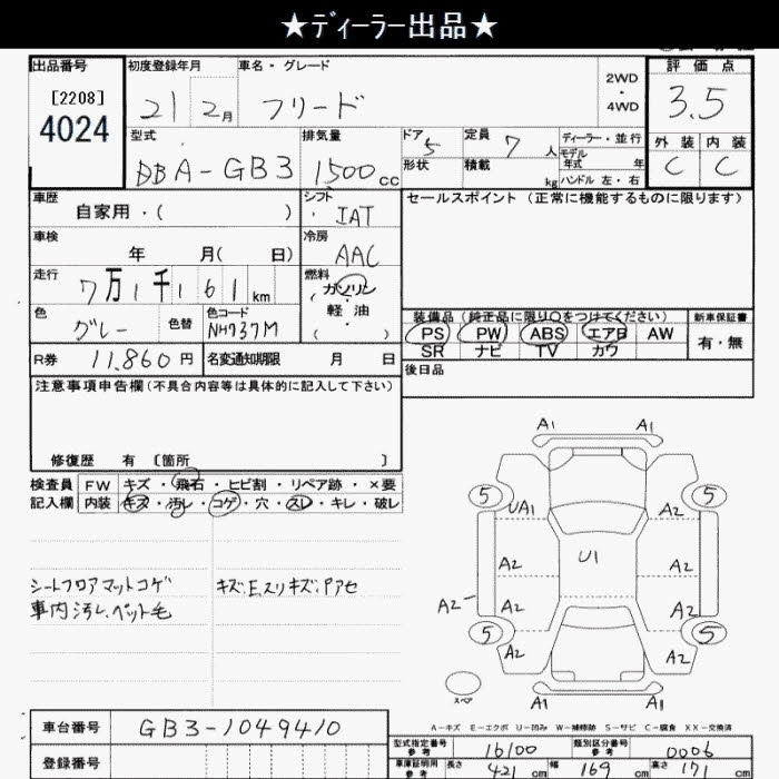 HONDA FREED 2009 г., лот № 4024