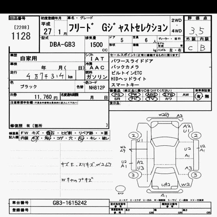 HONDA FREED 2015 г., лот № 1128