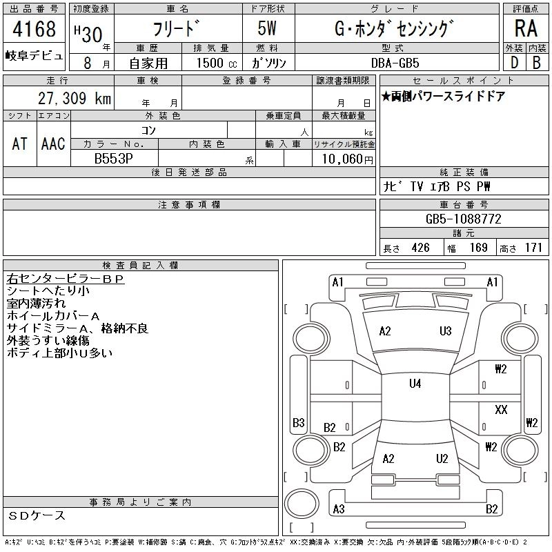 HONDA FREED 2018 г., лот № 4168