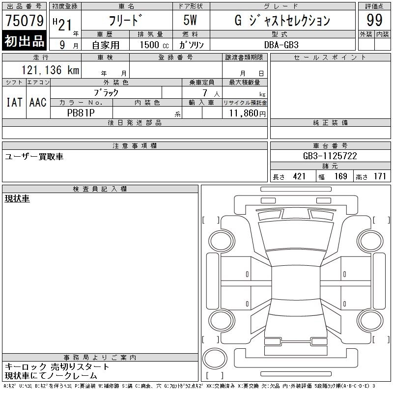 HONDA FREED 2009 г., лот № 75079