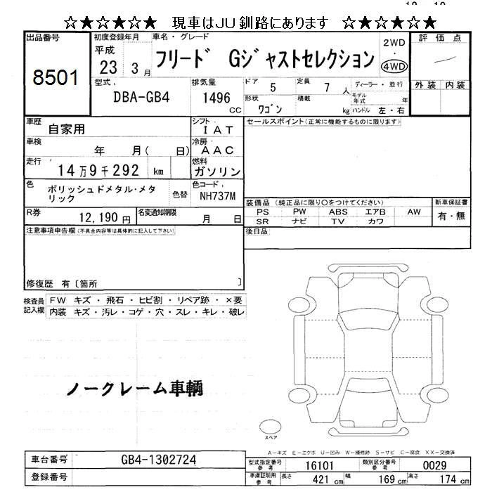 HONDA FREED 2011 г., лот № 8501