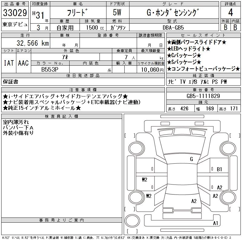 HONDA FREED 2019 г., лот № 33029