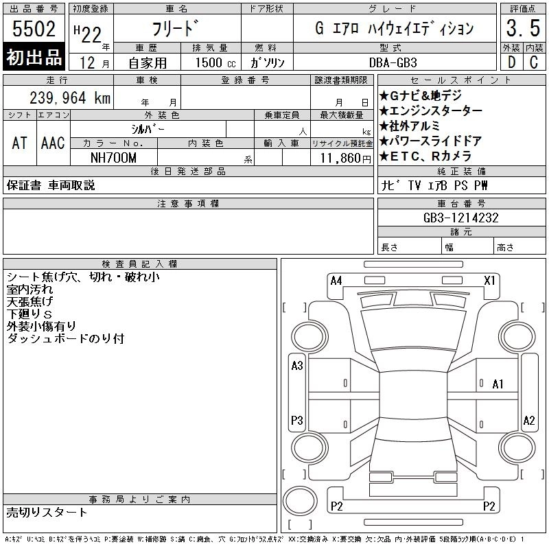 HONDA FREED 2010 г., лот № 5502