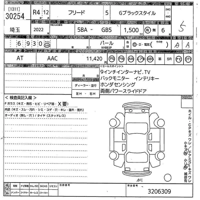 HONDA FREED 2022 г., лот № 30254
