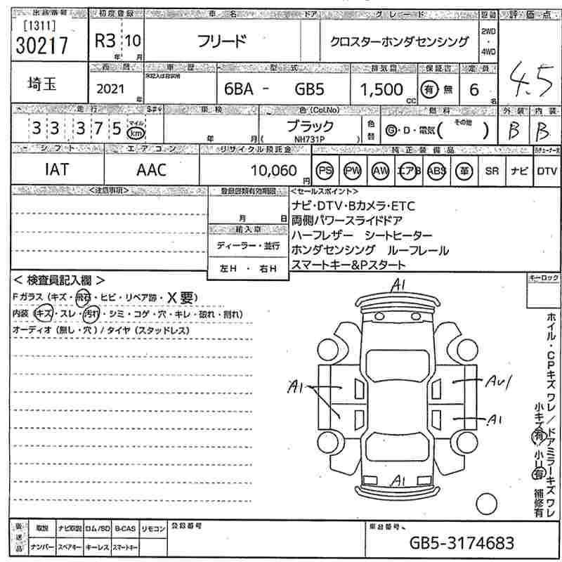 HONDA FREED 2021 г., лот № 30217