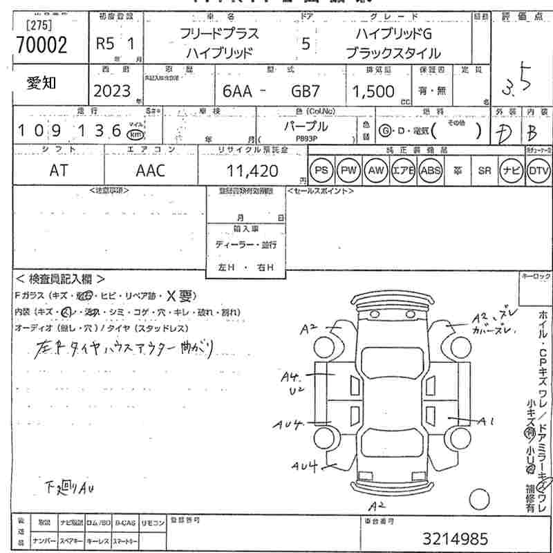 Статус не продан Лот 70002 Аукцион MIRIVE Aichi Дата аукциона 23.01.2026