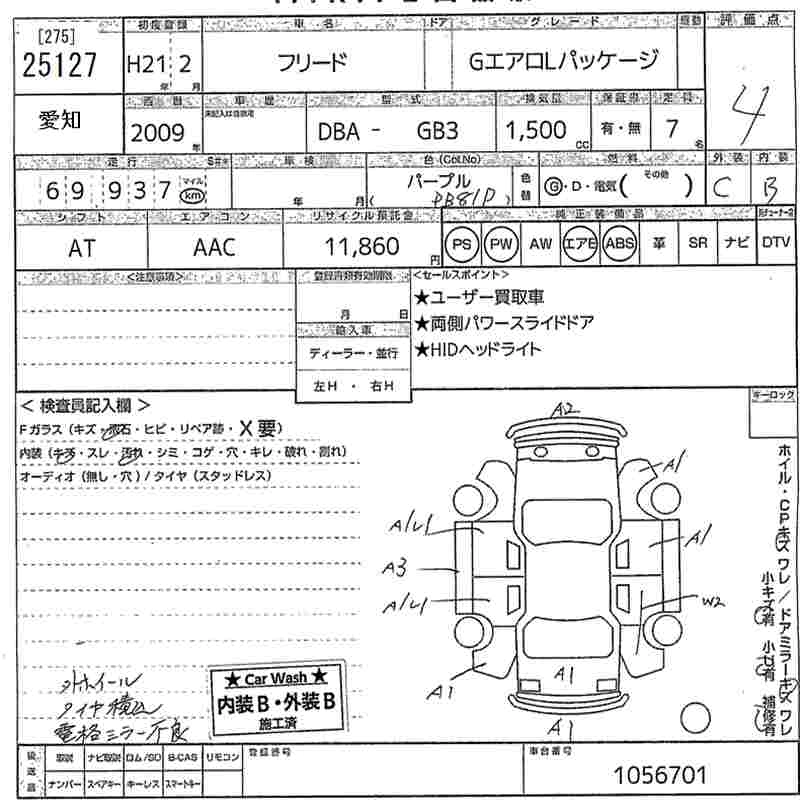 HONDA FREED 2009 г., лот № 25127