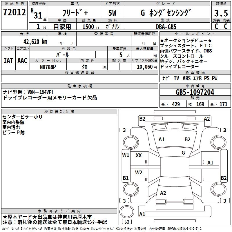 HONDA FREED+ 2019 г., лот № 72012
