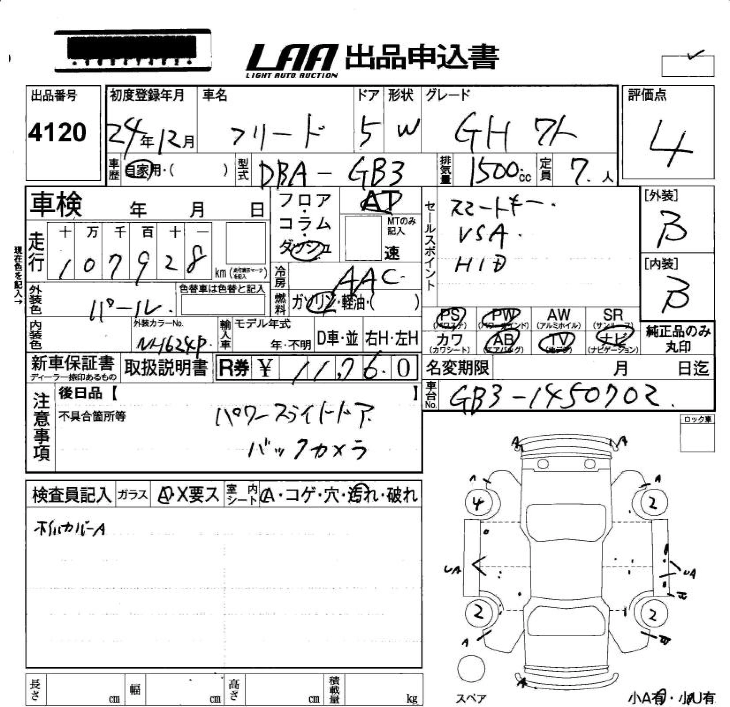 Статус не продан Лот 4120 Аукцион LAA Okayama Дата аукциона 23.01.2026