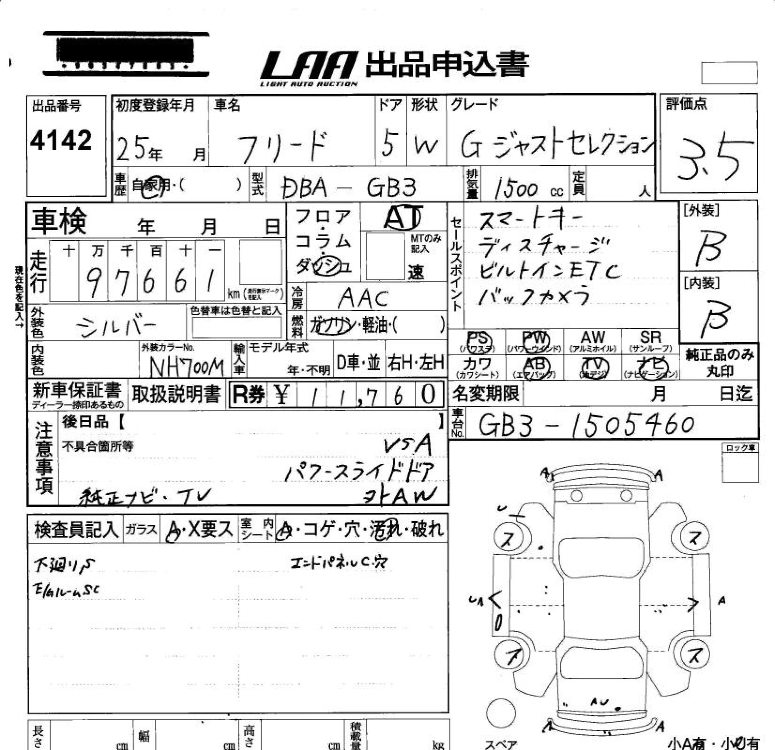 Статус не продан Лот 4142 Аукцион LAA Okayama Дата аукциона 23.01.2026