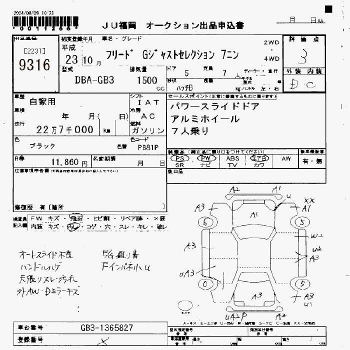 Статус не продан Лот 9316 Аукцион JU Fukuoka Дата аукциона 23.01.2026