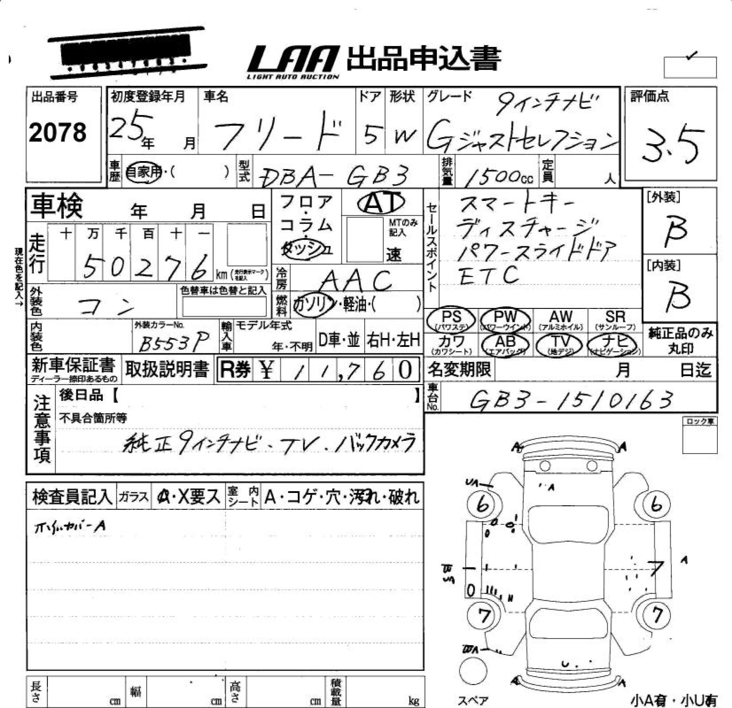 Статус не продан Лот 2078 Аукцион LAA Okayama Дата аукциона 23.01.2026