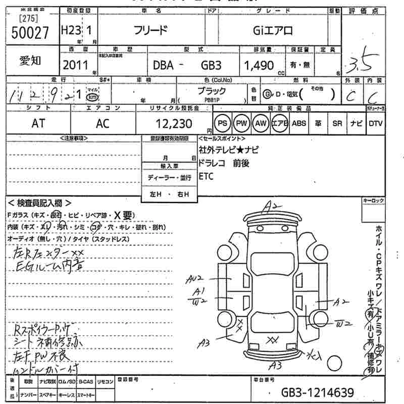 HONDA FREED 2011 г., лот № 50027