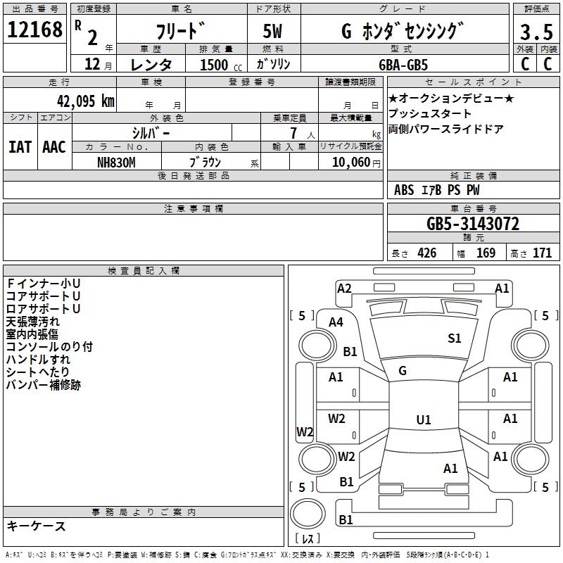 HONDA FREED 2020 г., лот № 12168