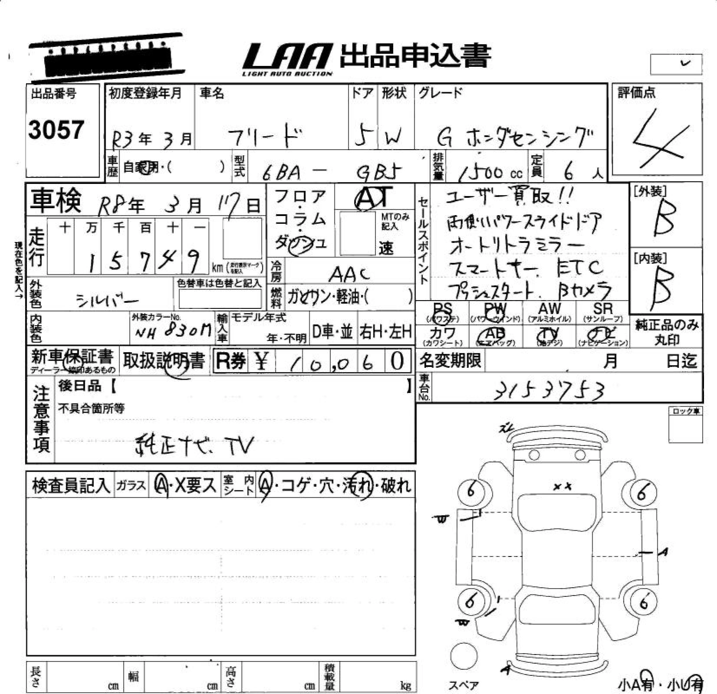 Статус не продан Лот 3057 Аукцион LAA Okayama Дата аукциона 23.01.2026