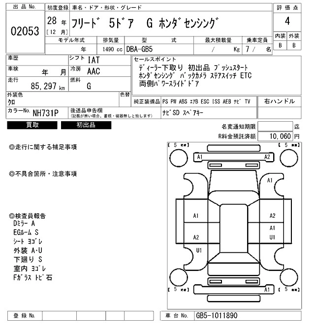 HONDA FREED 2016 г., лот № 2053