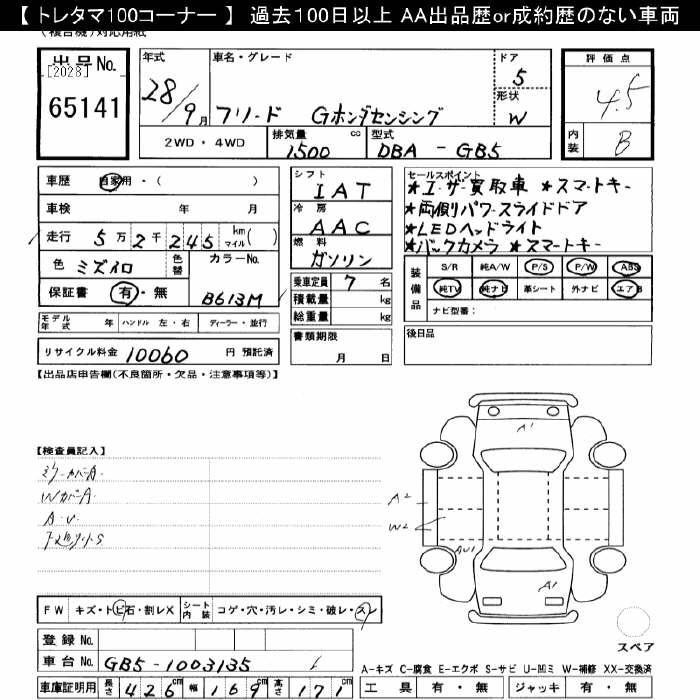 HONDA FREED 2016 г., лот № 65141