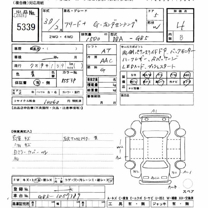 HONDA FREED+ 2018 г., лот № 5339