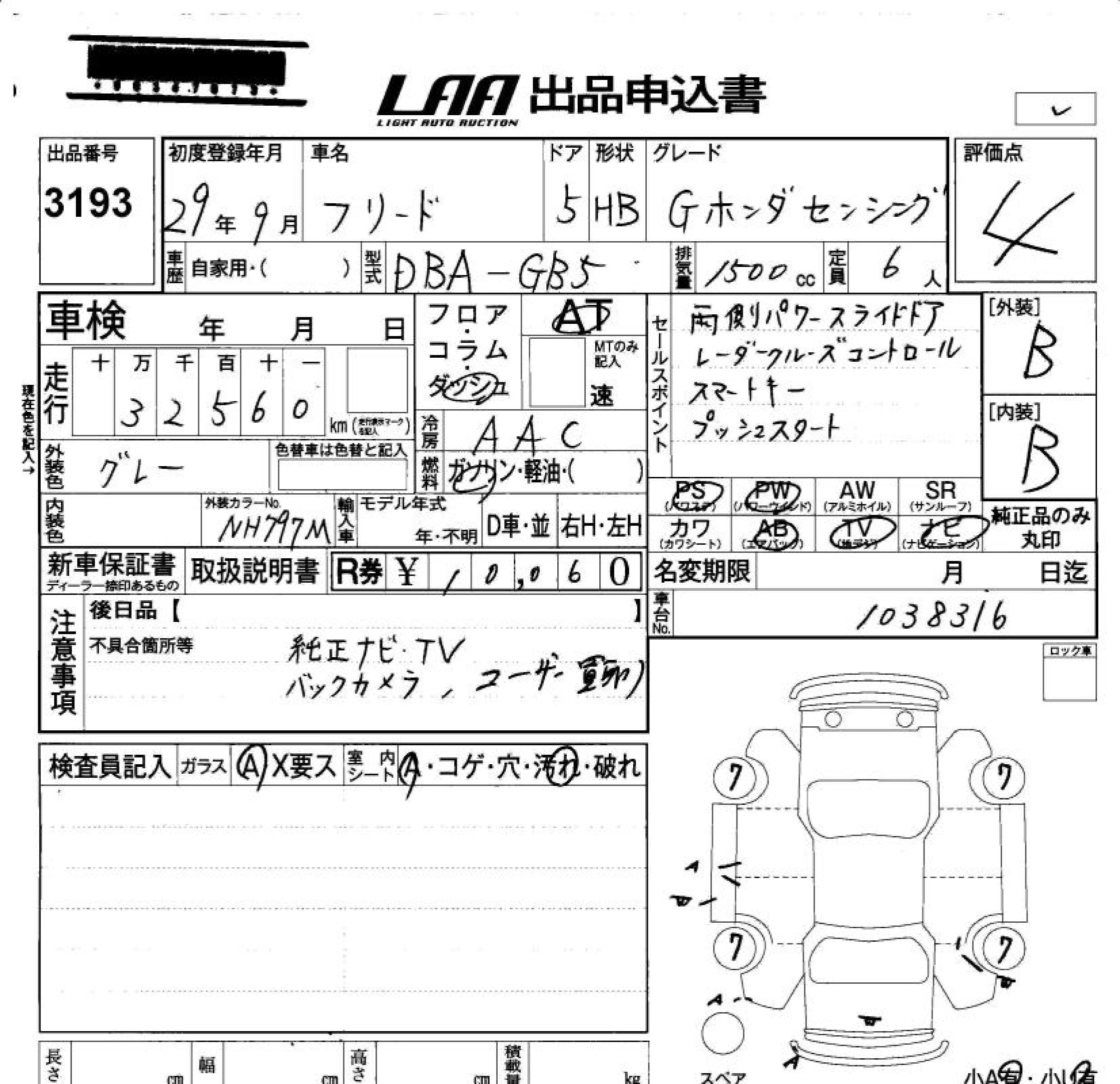 HONDA FREED 2017 г., лот № 3193