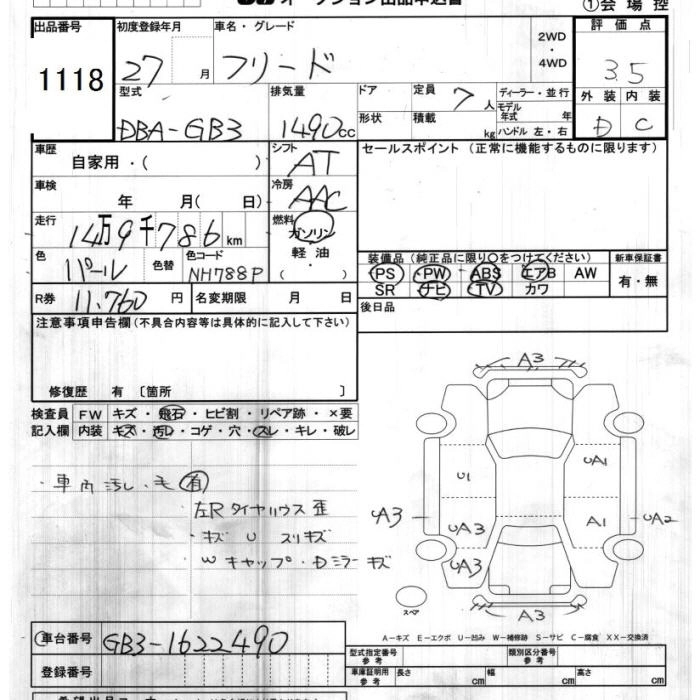HONDA FREED 2015 г., лот № 1118
