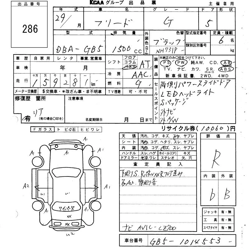 HONDA FREED 2017 г., лот № 286