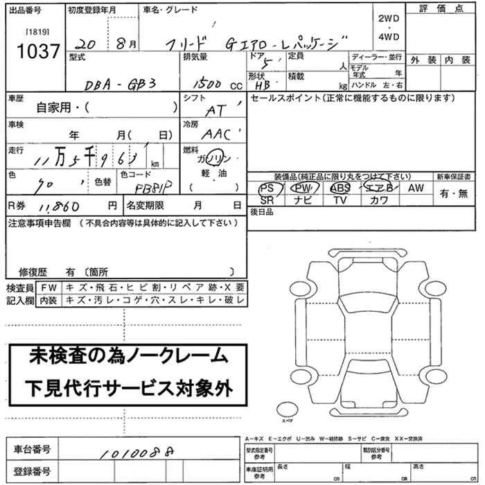 HONDA FREED 2008 г., лот № 1037