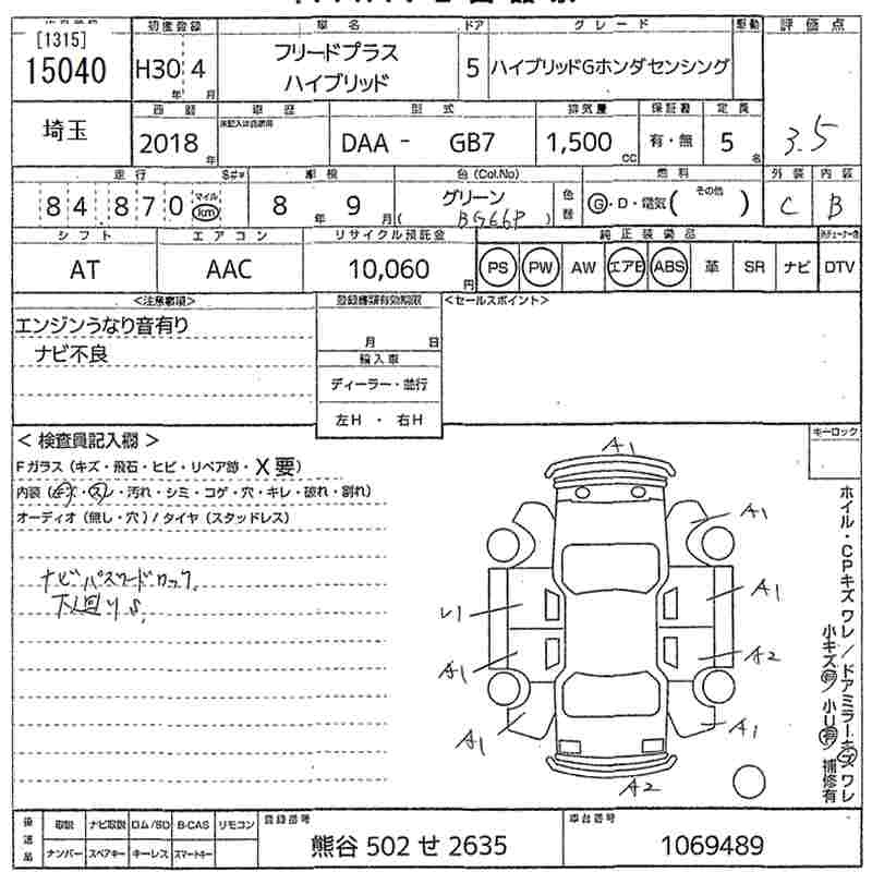 HONDA FREED+ 2018 г., лот № 15040