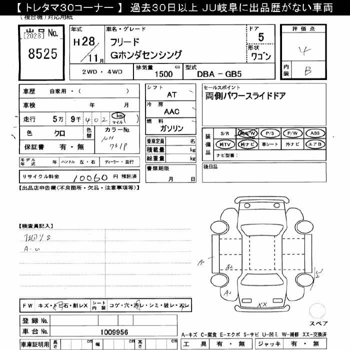 HONDA FREED 2016 г., лот № 8525