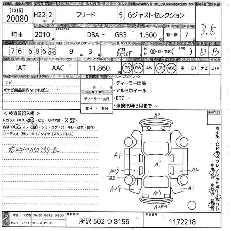 HONDA FREED 2010 г., лот № 20080