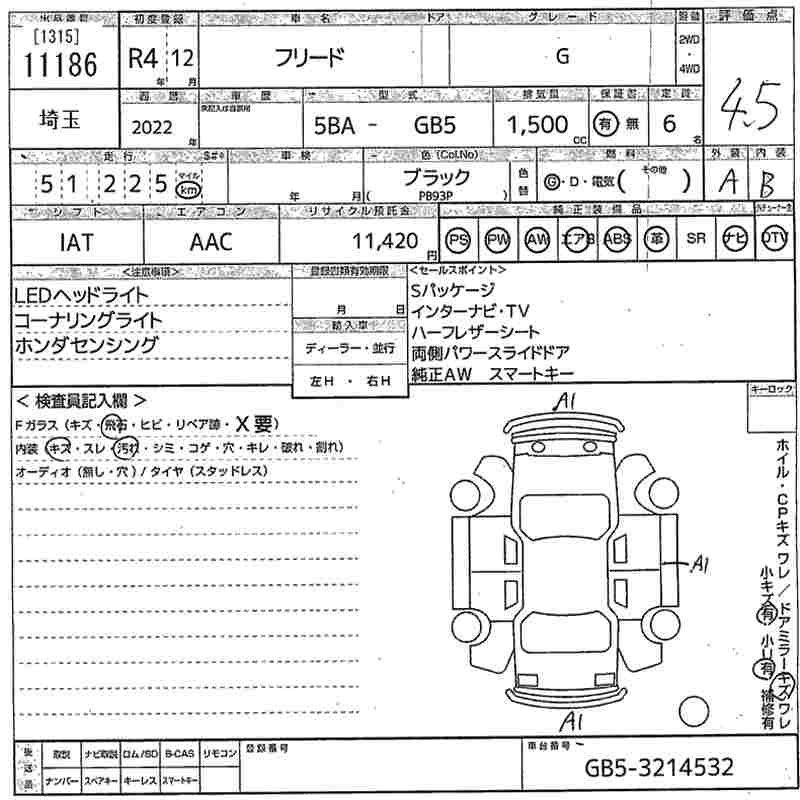 HONDA FREED 2022 г., лот № 11186