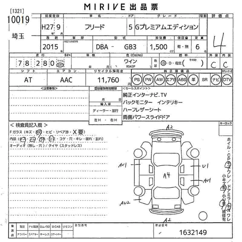 HONDA FREED 2015 г., лот № 10019
