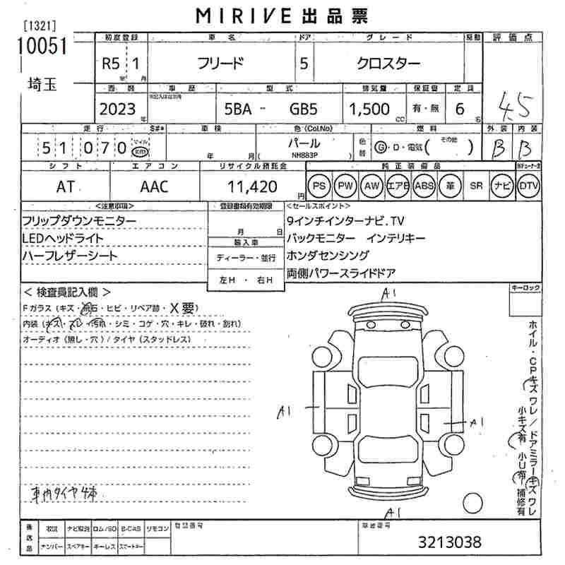 HONDA FREED 2023 г., лот № 10051