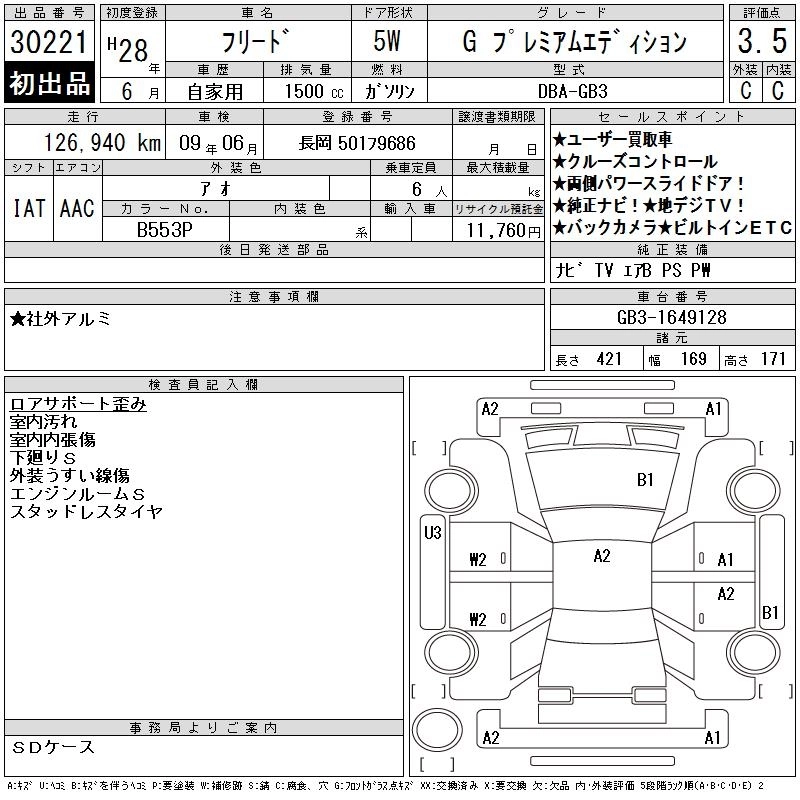 HONDA FREED 2016 г., лот № 30221