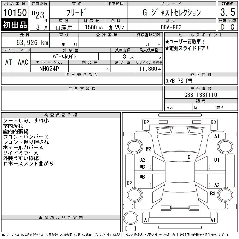 HONDA FREED 2011 г., лот № 10150