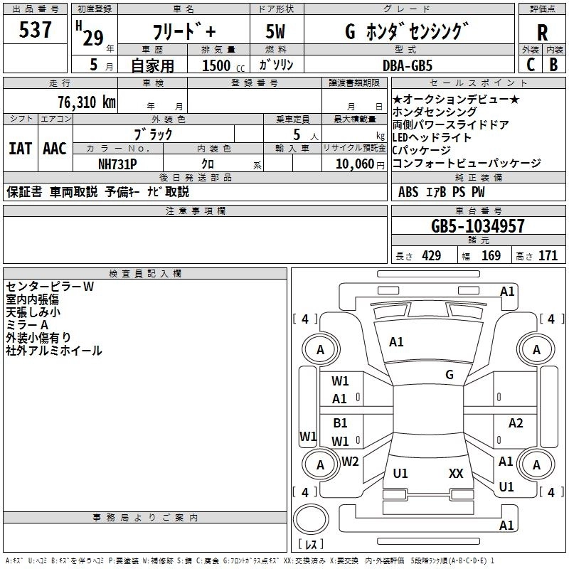HONDA FREED+ 2017 г., лот № 537