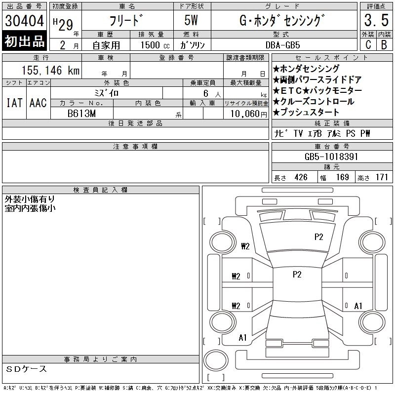 HONDA FREED 2017 г., лот № 30404
