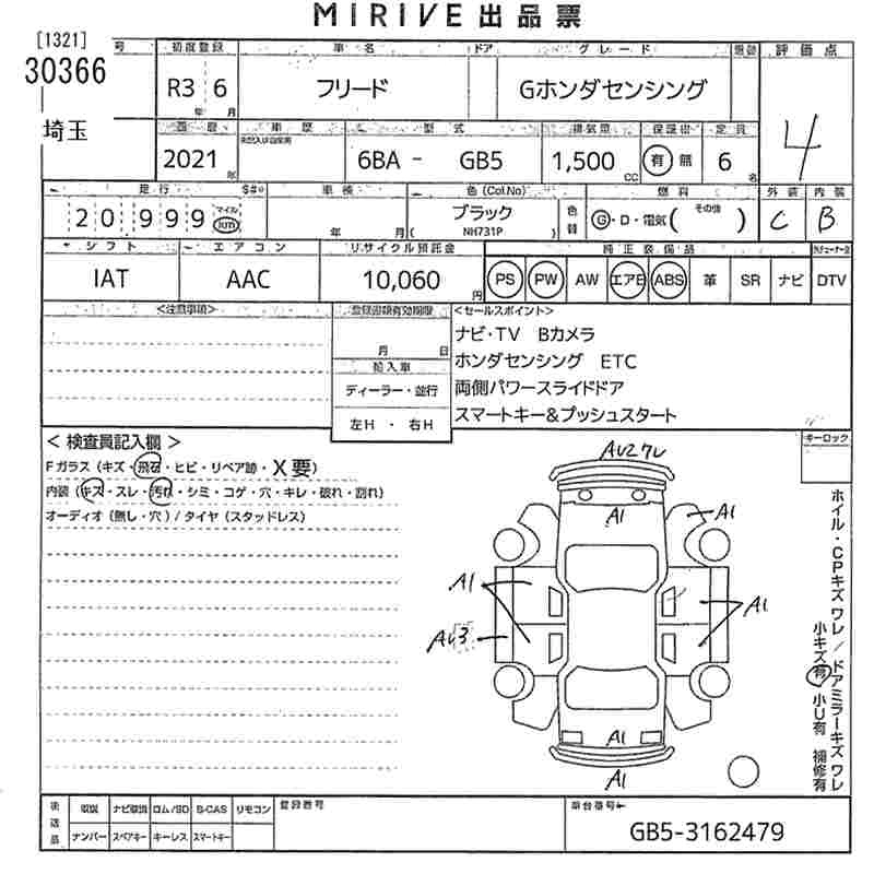 HONDA FREED 2021 г., лот № 30366